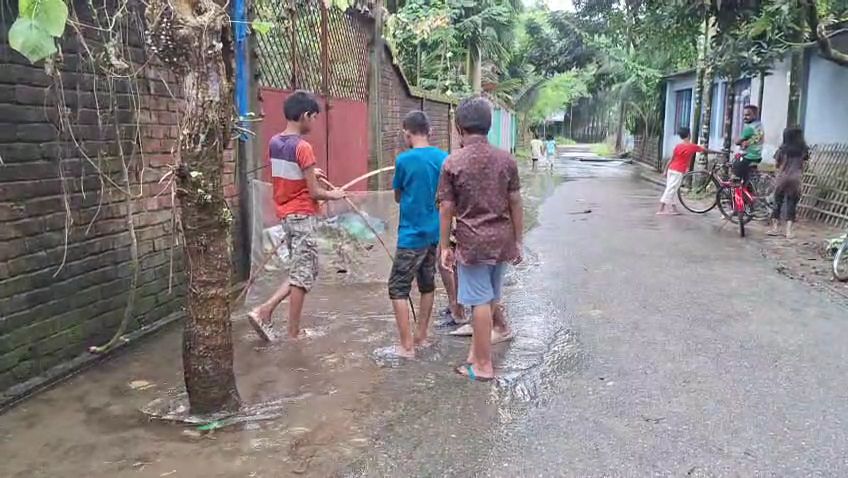 সরজমিন পরিদর্শন করে দেখা যায়, তেতুলিয়া সদরের মমিনপাড়া এলাকায় সড়কের ওপর দিয়ে পানি প্রবাহিত হচ্ছে, এতে চরম দুর্ভোগে পড়েছেন জন সাধারণ মানুষ।