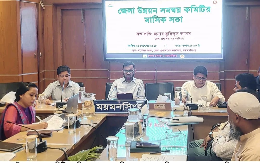 ময়মনসিংহ জেলা প্রশাসক মুফিদুল আলমের সভাপতিত্বে জেলা উন্নয়ন সমন্বয় সভায় জেলার সার্বিক উন্নয়ন কর্মকাণ্ড, চলমান প্রকল্পের অগ্রগতি এবং ভবিষ্যৎ পরিকল্পনা নিয়ে বিস্তারিত আলোচনা হয়। জেলা প্রশাসকের সম্মেলন কক্ষে আজকে ২১সেপ্টেম্বর রবিবার অনুষ্ঠিতব্য সভায় সংশ্লিষ্ট সরকারি দপ্তরের প্রধানরা উপস্থিত থেকে তাঁদের নিজ নিজ বিভাগের কার্যক্রম তুলে ধরেন।
