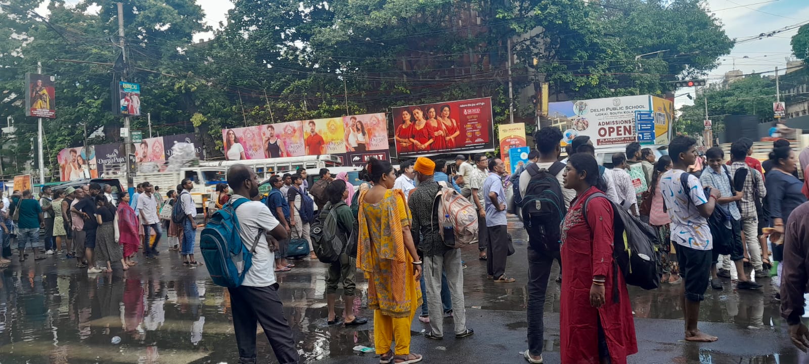 সকাল থেকে বন্ধ হয়ে যায় মেট্রো পরিষেবা, বিকেল পাঁচটার পরেও কোন পরিষেবা দিতে পারেনি মেট্রো কর্তৃপক্ষ, রাস্তায় হাজার হাজার মানুষ বিপদে পড়েন গাড়ি না পেয়ে, কেউ কেউ বলেন আমরা গড়িয়াহাট থেকে রাসবিহারী পর্যন্ত জল ঢেলে হেঁটে এসেছি, আবার কেউ কেউ বলেন কসবা থেকে গড়িয়াহাট পর্যন্ত জল ঢেলে হেঁটে আসতে হয়েছে।, কেউ বলেন বেহালা থেকে তারাতলা পর্যন্ত জল ঢেলে হেঁটে আসতে হয়েছে। কেউ বলেন আমরা অফিসে বেরিয়ে বিপদে পড়েছি, আর যারা স্কুটার, বাইক ও চার চাকার গাড়ি নিয়ে বেরিয়েছিলেন তারাও বিপদে পড়েছেন, বেশিরভাগ গাড়ি রাস্তার জলের চাপে বন্ধ হয়ে গিয়েছে। কোনোভাবে ঠেলে ঠেলে রাস্তার সাইডে দাঁড় করাতে হচ্ছে। সন্ধ্যা ৭ টা পর্যন্তও জল নামেনি, এরমধ্যে সন্ধ্যার পর কয়েকটি অটো চললেও ভাড়া দ্বিগুণের বেশি নিচ্ছেন, কেউ কুড়ি টাকার ভাড়া 40 টাকা, কেউ কুড়ি টাকার ভাড়া ৫০ টাকা, কেউ ১৫ টাকার ভাড়া ২৫ টাকা, শুধু তাই নয় ভাড়া বলে নিয়ে গেলেও নিজেদের ইচ্ছামতো যেখানে জল বেশি দেখছে সেখান পর্যন্ত গিয়ে অটো থামিয়ে দিচ্ছেন, ফলে আরো বিপাকে পড়ছেন পথযাত্রীরা। শারীবর্ধভাবে বাসস্ট্যান্ডে দাঁড়িয়ে থাকতে, বাধ্য হয়েছেন যাত্রীরা বেশি টাকা দিয়ে ম্যাটাডোড়ে করে যেতে।