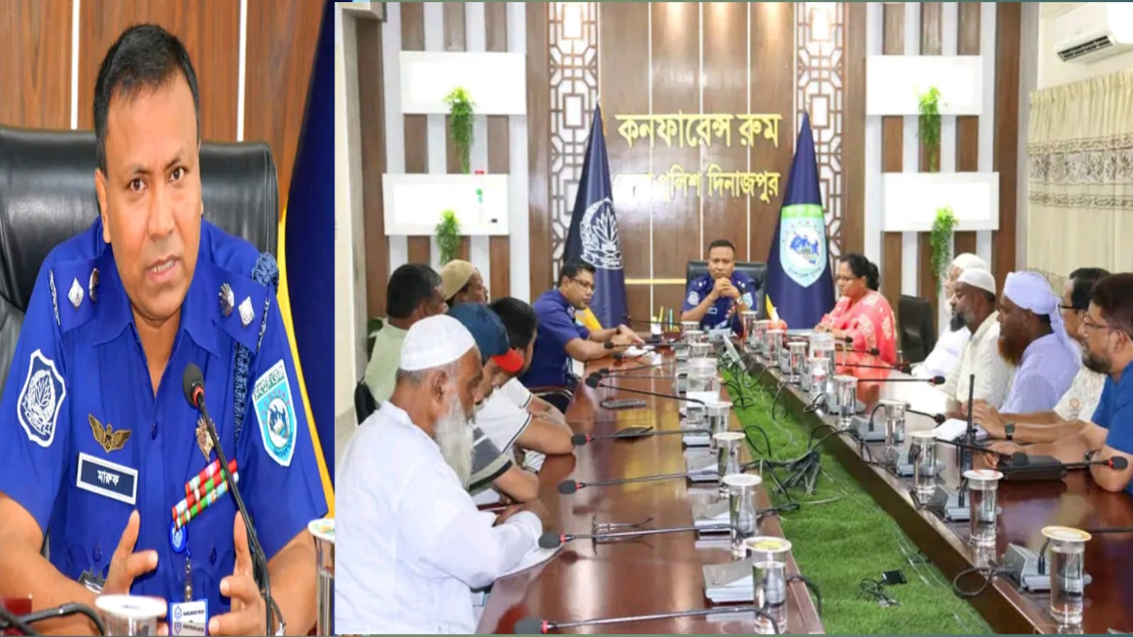 মঙ্গলবার (২৩ সেপ্টেম্বর) দুপুরে জেলা পুলিশ সুপারের কার্যালয়ের সম্মেলন কক্ষে এ সভা অনুষ্ঠিত হয়। এতে সভাপতিত্ব করেন দিনাজপুরের পুলিশ সুপার মোঃ মারুফাত হুসাইন।