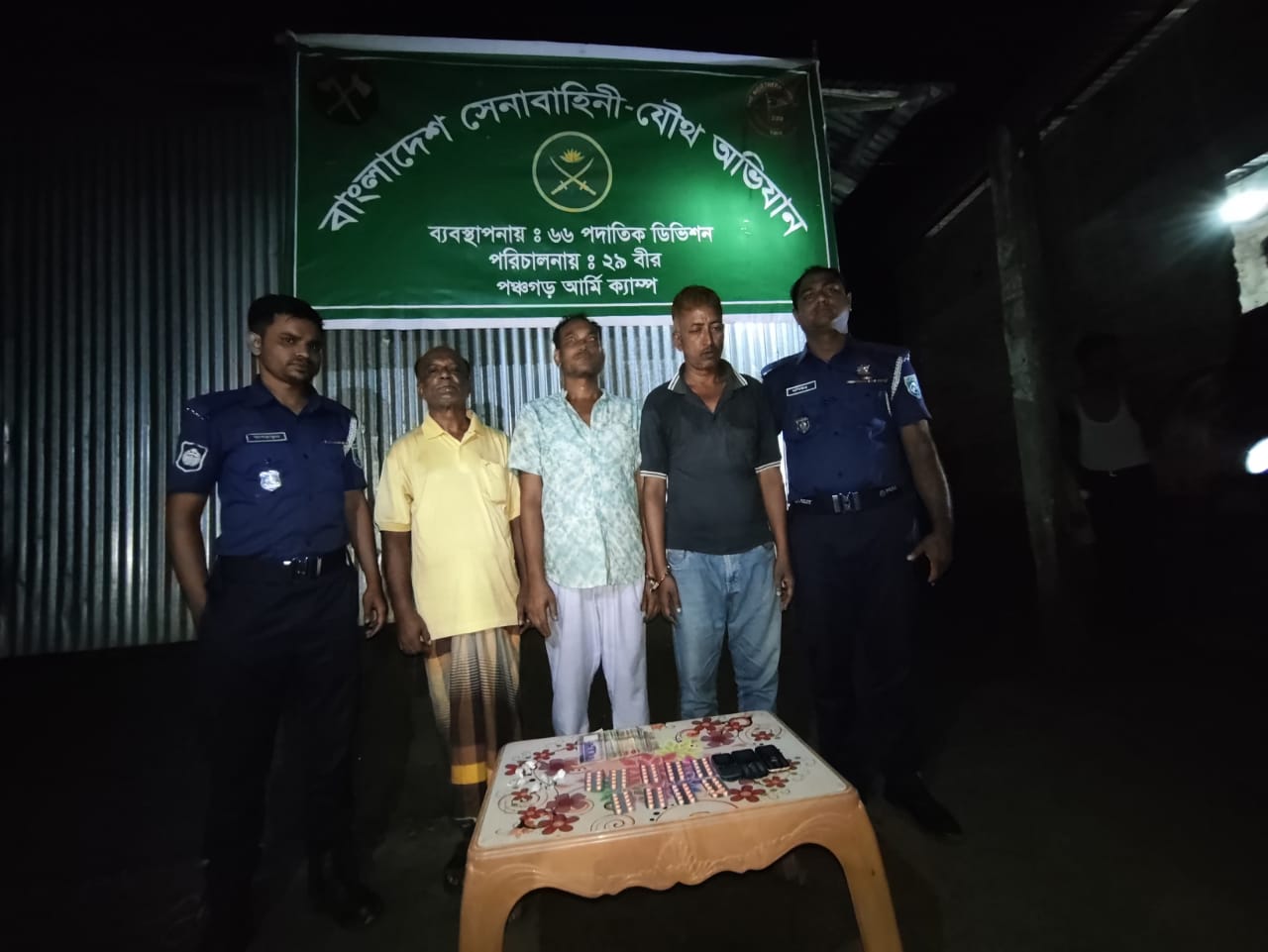 জানা যায়, পঞ্চগড় সদর উপজেলার কামাত কাজলদিঘী ইউনিয়নের ঘটবর এলাকায় মাদকের বেচাকেনা চলছে। এমন সংবাদের ভিত্তিতে বাংলাদেশ সেনাবাহিনীর রংপুর ৬৬ পদাতিক ডিভিশনের ২২২ পদাতিক ব্রিগেডের সৈয়দপুর সেনানিবাস