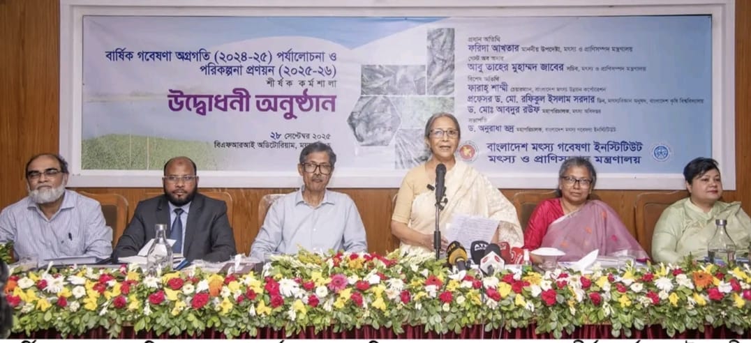 আজ ২৮সেপ্টেম্বর রবিবার সকালে উপদেষ্টা বাংলাদেশ মৎস্য গবেষণা ইনস্টিটিউট (বিএফআরআই)-এর অডিটোরিয়ামে আয়োজিত “বার্ষিক গবেষণা অগ্রগতি (২০২৪-২৫) পর্যালোচনা এবং পরিকল্পনা প্রণয়ন (২০২৫-২৬)” শীর্ষক কর্মশালায় এসব কথা বলেন।