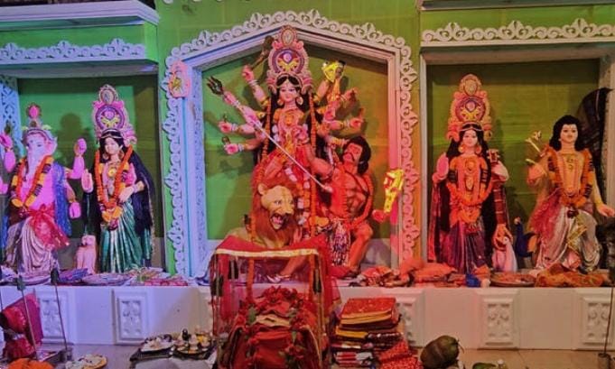 উৎসবমুখর পরিবেশে ময়মনসিংহে মহাসপ্তমীর পূজা