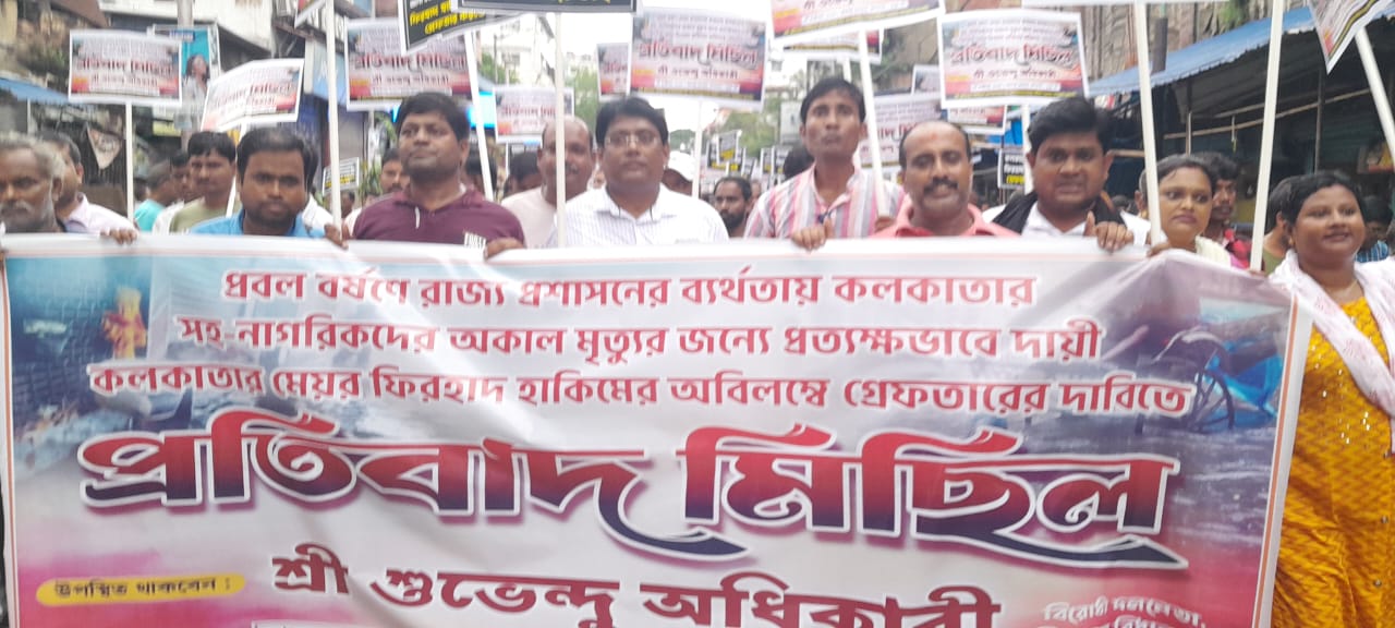 আজ ৫ই অক্টোবর রবিবার, ঠিক দুপুর দুটোয় বিরোধী দলনেতা শুভেন্দু অধিকারীর নেতৃত্বে ও নাগরিকদের সহযোগিতায় প্রতিবাদ মিছিল। পুজোর মুখে প্রবল বর্ষণে , পৌরসভার ও প্রশাসনের গাফিলতিতে এবং ব্যর্থতায় কলকাতা সহ জেলায় পুজোর মুখে বিদ্যুৎপৃষ্ট হয়ে নাগরিকদের অকাল মৃত্যু ঘটায়, তাহার প্রতিবাদে এবং কলকাতার মেয়র ফিরাদ হাকিম কে গ্রেপ্তারের দাবীতে, কলেজ স্কোয়ার থেকে কয়েকশো নাগরিকদের প্রতিবাদ মিছিল এস এন ব্যানার্জি রোড ধরে ধর্মতলা ডরিনা ক্রসিং এ শেষ হয় এবং একটি প্রতিবাদ সভা করেন।