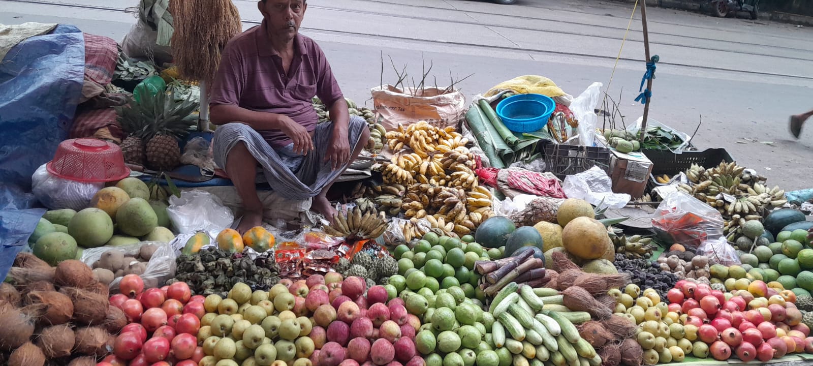 গাঁদা ফুল পার চেনের দাম ৫০ থেকে ৭০ টাকা, পদ্মফুল পার পিস ২৫ থেকে ৩০ টাকা, ডাব মিনিমাম ৩০ টাকা থেকে ৭০ টাকা, নারকেল মিনিমাম ৫০ টাকা থেকে ৭০ টাকা, শসা ৮০ টাকা, কলা গাছ পারপিস ৩০ টাকা, আপেল ২০০ থেকে আড়াইশো টাকা, বেদানা ২০০ টিকে আড়াইশো টাকা, কলা ডজন ৭০ টাকা থেকে ৮০ টাকা, পেয়ারা ১০০ টাকা থেকে একশো কুড়ি টাকা, এইভাবে প্রতিটা জিনিসের দাম বেড়ে গিয়েছে।