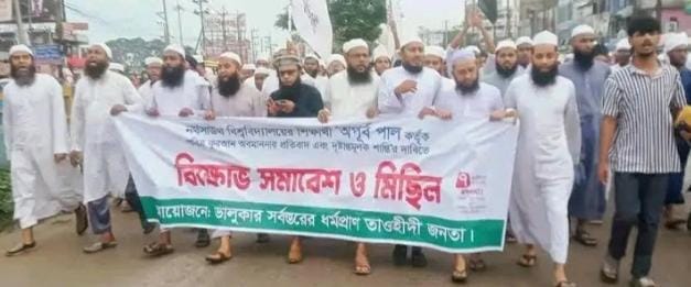 নর্থ সাউথ বিশ্ববিদ্যালয়ের শিক্ষার্থী অপূর্ব পাল কর্তৃক পবিত্র কুরআন অবমাননার ঘটনায় ক্ষোভে ফেটে পড়েছে ময়মনসিংহের ভালুকাবাসী। এ ঘটনার প্রতিবাদে মঙ্গলবার (৭ অক্টোবর ২০২৫) বিকেলে ভালুকায় বিক্ষোভ মিছিল ও প্রতিবাদ সমাবেশ অনুষ্ঠিত হয়।