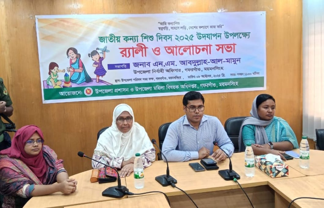 ময়মনসিংহের গফরগাঁওয়ে জাতীয় কন্যা শিশু দিবস ২০২৫ উদযাপন উপলক্ষে বর্ণাঢ্য র্যালি ও আলোচনা সভা অনুষ্ঠিত হয়েছে।