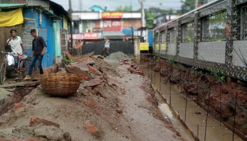 পৌরসভার প্রাচীর ঘেঁষে আলিয়া মাদ্রাসার সামনে পর্যন্ত ড্রেনেজ ব্যবস্থার কাজ করছে ঠিকাদারী প্রতিষ্ঠান। অন্যদিকে কেন্দ্রীয় মসজিদ সংলগ্ন মুরগীহাট, পাবলিক লাইব্রেরী, প্রভাতী বিদ্যাপিঠ সরকারি প্রাথমিক বিদ্যালয়, বিভিন্ন কম্পানির ডিলারশীপ সহ অসংখ্য ব্যবসা প্রতিষ্ঠানের সামনে দিয়ে সাপ্লাই পানি সরবরাহের পাইপ লাইন সংস্কারের জন্য খোঁড়া হয়েছে।