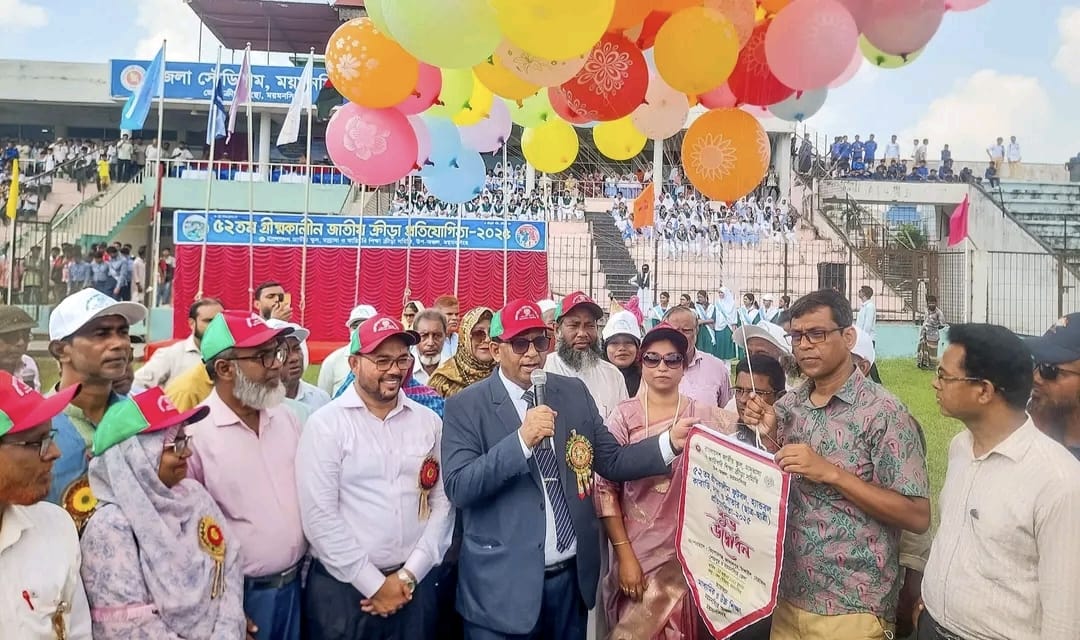 বাংলাদেশ জাতীয় স্কুল, মাদ্রাসা ও কারিগরি শিক্ষা ক্রীড়া সমিতি উপ-অঞ্চল ময়মনসিংহের উদ্যোগে বর্ণাঢ্য আয়োজনে আজ ১৫অক্টোবর মঙ্গলবার অনুষ্ঠিত হয়েছে ৫২তম গ্রীষ্মকালীন জাতীয় ক্রীড়া প্রতিযোগিতা ২০২৫-এর উদ্বোধন অনুষ্ঠান। সকালে জেলা স্টেডিয়ামে জাতীয় সংগীত পরিবেশন ও জাতীয় পতাকা উত্তোলনের মাধ্যমে প্রতিযোগিতার শুভ উদ্বোধন করেন প্রধান অতিথি ময়মনসিংহ বিভাগীয় কমিশনার মো: মোখতার আহমেদ।