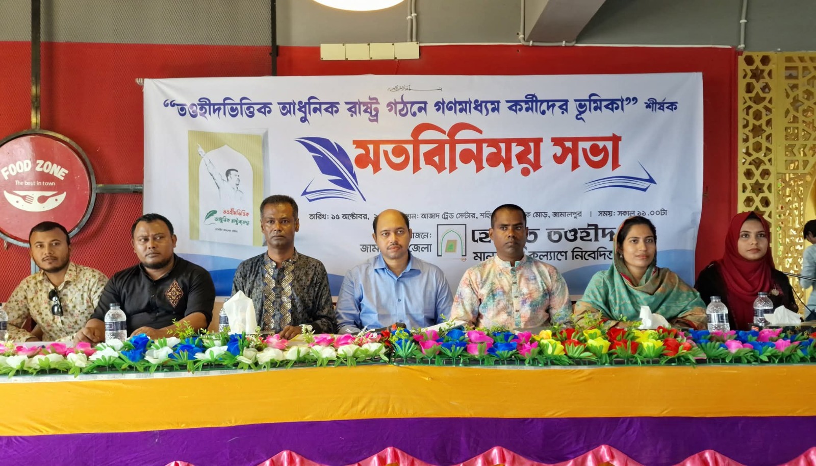উপস্থিত গণমাধ্যম কর্মীরা প্রতিপাদ্য বিষয়ের উপর মুক্ত আলোচনা করেন। তওহীদ ভিত্তিক রাষ্ট্র ব্যবস্থার বিভিন্ন দিক নিয়ে গঠনমূলক আলোচনা এবং তাঁদের সুচিন্তিত মতামত তুলে ধরেন।এ সময়ে জামারপুর প্রেস ক্লাবের সভাপতি ও চ্যানেল আই এর জেলা প্রতিনিধি হাফিজ রাযহান সাদা,গাজী টেলিভিশন প্রতিনিধি আলী আকবর, এনটিভির প্রতিনিধি নাহিদ হাসান,দৈনিক কালের কণ্ঠ প্রতিনিধি রকিব হাসান, বাংলাভিশন টেলিভিশনের প্রতিনিধি জে এম জাহিদ হাবিব,আর টিভির প্রতিনিধি সুজিত রায়,এশিয়ান টিভির প্রতিনিধি মোস্তফিজুর রহমান,আনন্দ টিভির প্রতিনিধি রোকনুজ্জামান,নাগরিক টিভি প্রতিনিধি আব্দুল্লাহ আল লোমান,যমুনা টেলিভিশনের প্রতিনিধি সাগর ফরাজী,সময় টিভির প্রতিনিধি আবুল কালাম আজাদ,আমার দেশ পত্রিকার প্রতিনিধি আনোয়ারুল ইসলাম,দৈনিক মানবকণ্ঠ পত্রিকার প্রতিনিধি কাফি পারভেজ,চ্যানেল নাইন প্রতিনিধি শরিফুল ইসলাম রোকন,এসএ টিভির প্রতিনিধি,তৌফিকুল ইসলাম,চ্যানেল এসটিভি শামীম হোসেন,জামালপুর বার্তার মাহমুদুল হাসান রিয়াদসহ জামালপুর জেলায় কর্মরত বিভিন্ন প্রিন্ট ও ইলেক্ট্রনিক্স মিডিয়ার সাংবাদিক বৃন্দ উপস্থিত ছিলেন।