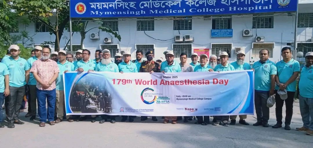 ১৭৯তম বিশ্ব এনেস্থিসিয়া দিবস উপলক্ষে ময়মনসিংহে বর্ণাঢ্য র্যালী ও আলোচনা সভা অনুষ্ঠিত হয়।