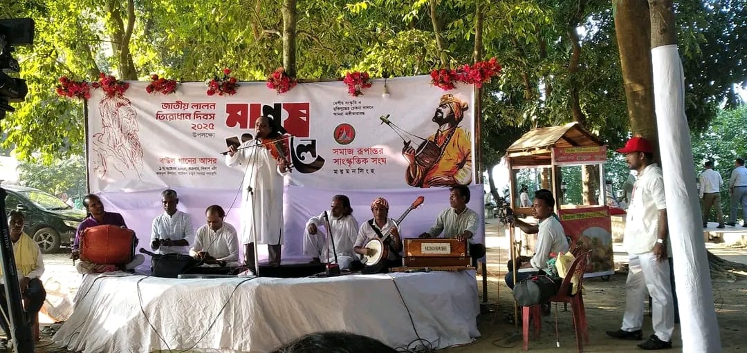 সারা দেশের ন্যায় ময়মনসিংহেও বর্ণাঢ্য আয়োজনে পালিত হয়েছে বাউল সম্রাট ফকির লালন সাঁইয়ের ১৩৫তম জাতীয় তিরোধান দিবস। নগরীর জয়নুল উদ্যানের ব্যাটবল চত্বর সংলগ্ন বধ্যভূমি এলাকায় ময়মনসিংহ সমাজ রূপান্তর সাংস্কৃতিক সংঘের উদ্যোগে শুক্রবার ১৭ অক্টোবর ২০২৫ বিকেলে আয়োজন করা হয় মনোজ্ঞ বাউল গানের আসর।