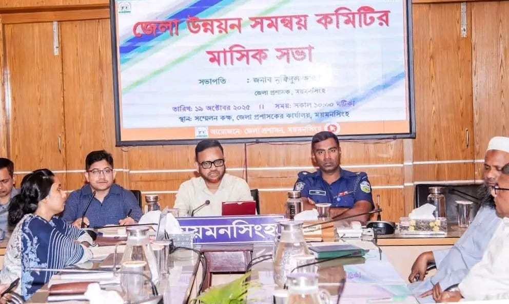 ময়মনসিংহ জেলার মাসিক উন্নয়ন সমন্বয় কমিটির সভা অনুষ্ঠিত হয়েছে। ময়মনসিংহ জেলা প্রশাসনের আয়োজনে দপ্তর কার্যালয়ের সম্মেলন কক্ষে আজ ১৯ অক্টোবর রবিবার এ সভা অনুষ্ঠিত হয়।