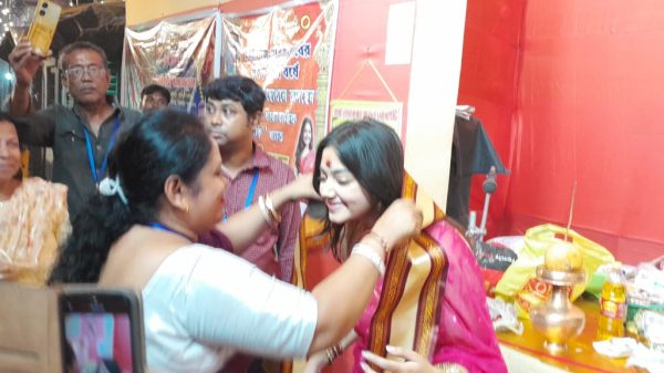 সুবর্ণ জয়ন্তী বর্ষে প্রতিমার আবরণ উন্মোচন করলেন, জি বাংলা খ্যাত ” ফুলকি”(দিব্যানী মন্ডল)।