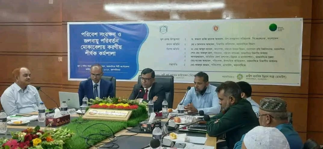 ময়মনসিংহ সিটি কর্পোরেশনের শহিদ শাহাবুদ্দিন মিলনায়তনে পরিবেশ সংরক্ষণ ও জলবায়ু পরিবর্তন মোকাবিলায় করণীয় শীর্ষক কর্মশালা আজ ২৩ অক্টোবর বৃহস্পতিবার দুপুরে অনুষ্ঠিত হয়।