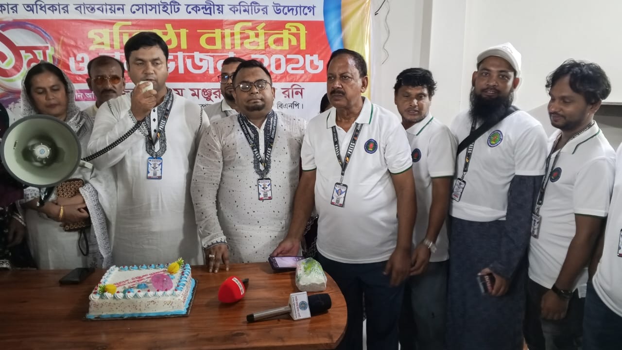 সাংবাদিক অধিকার বাস্তবায়ন সোসাইটির প্রতিষ্ঠা বার্ষিকীর কেক কাটার মধ্য দিয়ে অনুষ্ঠানের আনন্দময় সমাপ্তি ঘোষণা করা হয়।