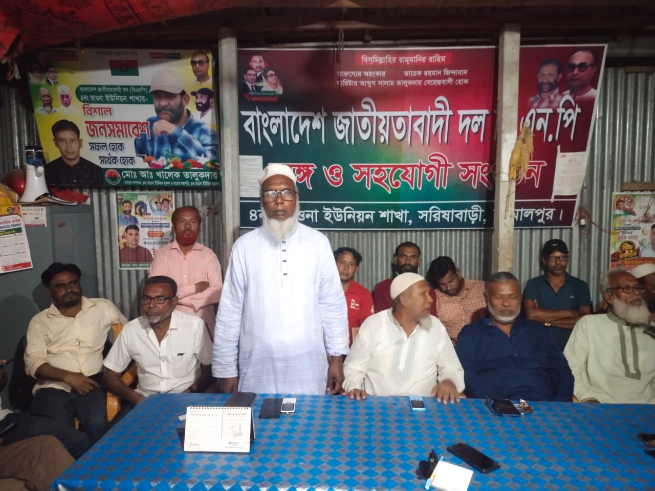 সরিষাবাড়িতে উদ্দেশ্যপ্রণোদিতাভাবে অপপ্রচারের বিরুদ্ধে ইউনিয়ন বিএনপির প্রতিবাদ সভা