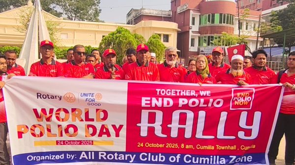 বিশ্ব পোলিও দিবসে কুমিল্লায় রোটারির বর্ণাঢ্য আয়োজন কুমিল্লা প্রতিনিধ :- বিশ্ব পোলিও দিবস উপলক্ষে কুমিল্লা অঞ্চলের সকল রোটারি ক্লাবের উদ্যোগে আলোচনা সভা ও বর্ণাঢ্য র্যালি অনুষ্ঠিত হয়েছে। বৃহস্পতিবার ...বিস্তারিত পড়ুন