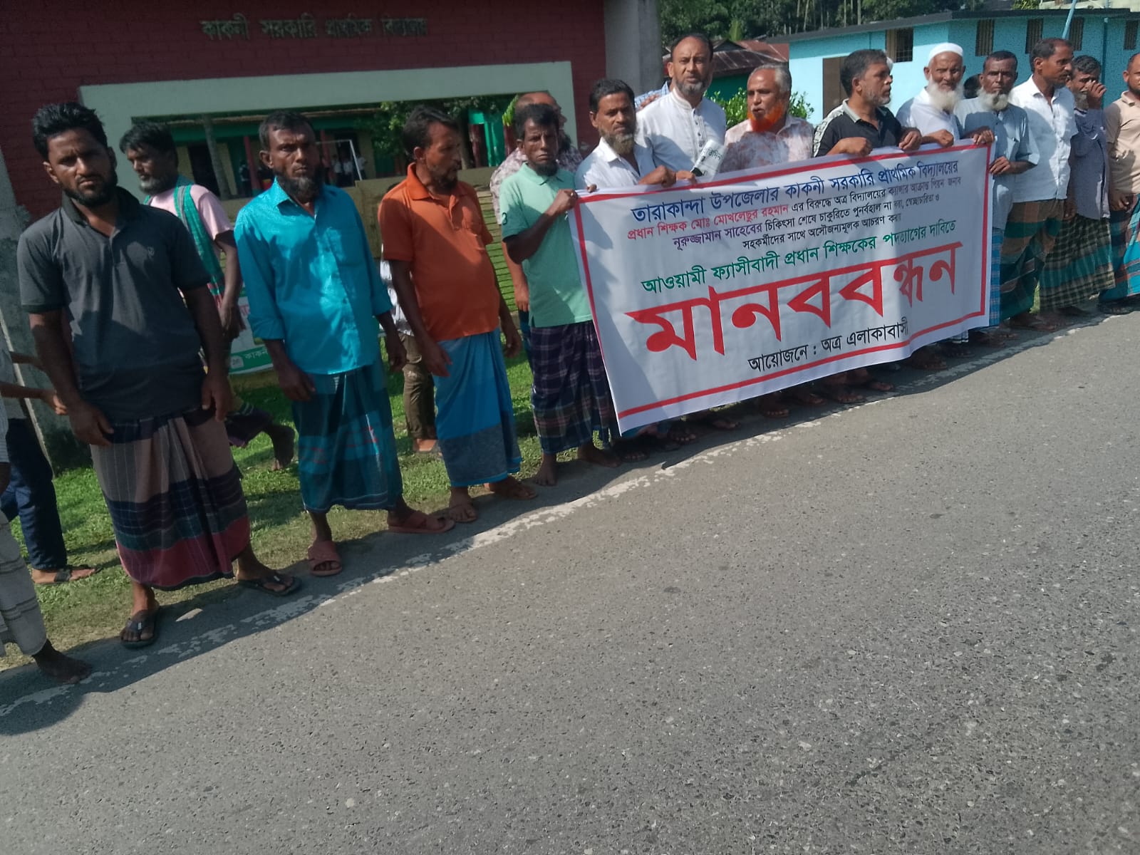 তারাকান্দায় প্রধান শিক্ষকের পদত্যাগ দাবিতে মানববন্ধন