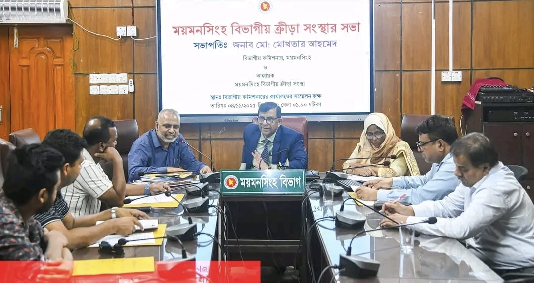 ময়মনসিংহ বিভাগীয় ক্রীড়া সংস্থার এডহক কমিটির সভা আজ ৪ নভেম্বর মংগলবার বিভাগীয় কমিশনারের কার্যালয়ের সম্মেলন কক্ষে এ সভা অনুষ্ঠিত হয়। সভায় সভাপতি হিসেবে উপস্থিত ছিলেন ময়মনসিংহ বিভাগীয় কমিশনার মোঃ মোখতার আহমেদ।