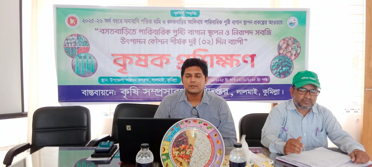 প্রশিক্ষণটি অনুষ্ঠিত হয় লালমাই উপজেলা কৃষি অফিসের হলরুমে। এতে “বসতবাড়িতে পারিবারিক পুষ্টিবাগান স্থাপন ও নিরাপদ সবজি উৎপাদন কৌশল” বিষয়ে কৃষকদের হাতে-কলমে প্রশিক্ষণ দেওয়া হয়।