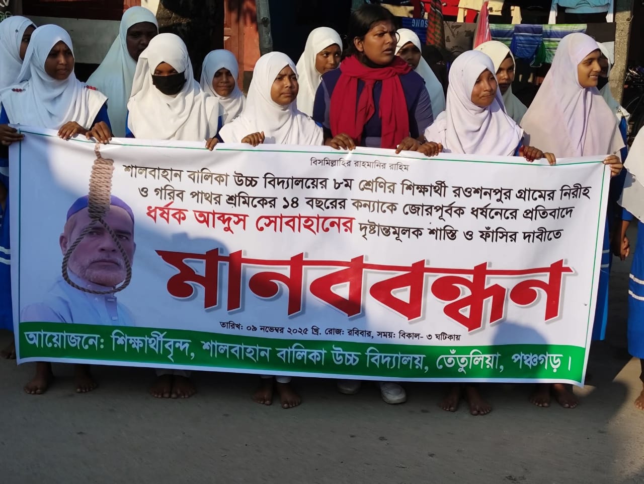 তেতুলিয়ার শালবাহানে ধর্ষণের বিচার দাবিতে শিক্ষার্থীদের প্রতিবাদ ও মানববন্ধন অনুষ্ঠিত
