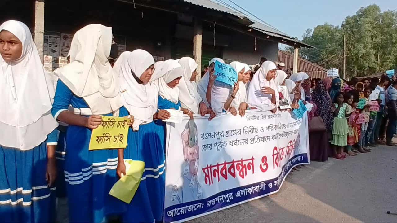তেতুলিয়ার শালবাহানে ধর্ষণের বিচার দাবিতে শিক্ষার্থীদের প্রতিবাদ ও মানববন্ধন অনুষ্ঠিত