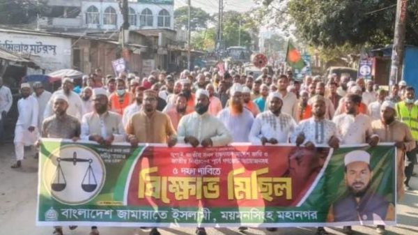 “৫ দফা দাবিতে ময়মনসিংহে জামায়াতের বিক্ষোভ ও মিছিল”