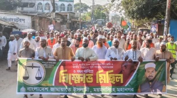 “৫ দফা দাবিতে ময়মনসিংহে জামায়াতের বিক্ষোভ ও মিছিল”