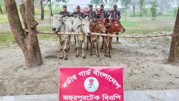 চাঁপাইনবাবগঞ্জ ব্যাটালিয়ান (৫৩ বিজিবি) কর্তৃক পৃথক পৃথক অভিযানে ৮ টি ভারতীয় গরু আটক করেছে। বিজিবি গোপন সূত্রের ভিত্তিতে জানতে পারে যে, চোরাকারবারীরা চোরাচালানের উদ্দেশ্যে ভারত হতে গবাদিপশু নদীতে ভাসিয়ে বাংলাদেশ আনে এবং গবাদিপশু গুলো অন্য স্থানে লুকিয়ে রেখেছে। এপ্রেক্ষিতে(২০ নভেম্বর) আনুমানিক ভোর ৪ঃ৩০ মিনিটের সময়। অত্র ব্যাটালিয়নের অধীনস্থ মনোহরপুর, জহুরপুর ও জহুরপুরটেক বিওপির বিশেষ টহলদল পৃথক পৃথক অভিযান পরিচালনা করে চাঁপাইনবাবগঞ্জ জেলার সদর ও শিবগঞ্জ থানাধীন সূর্যনারায়নপুর ও দুর্লভপুর ইউনিয়নের বিভিন্ন এলাকা হতে ০৮টি ভারতীয় গরু জব্দ করে। জব্দকৃত গরু চাঁপাইনবাবগঞ্জ শুল্ক কার্যালয় জমা করা হয়েছে।