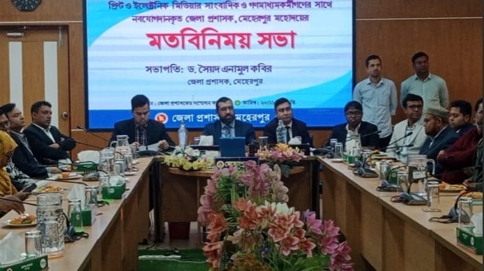 মেহেরপুরে নতুন জেলা প্রশাসক ড. সৈয়দ এনামুল কবিরের সঙ্গে সাংবাদিকদের মতবিনিময় সভা অনুষ্ঠিত