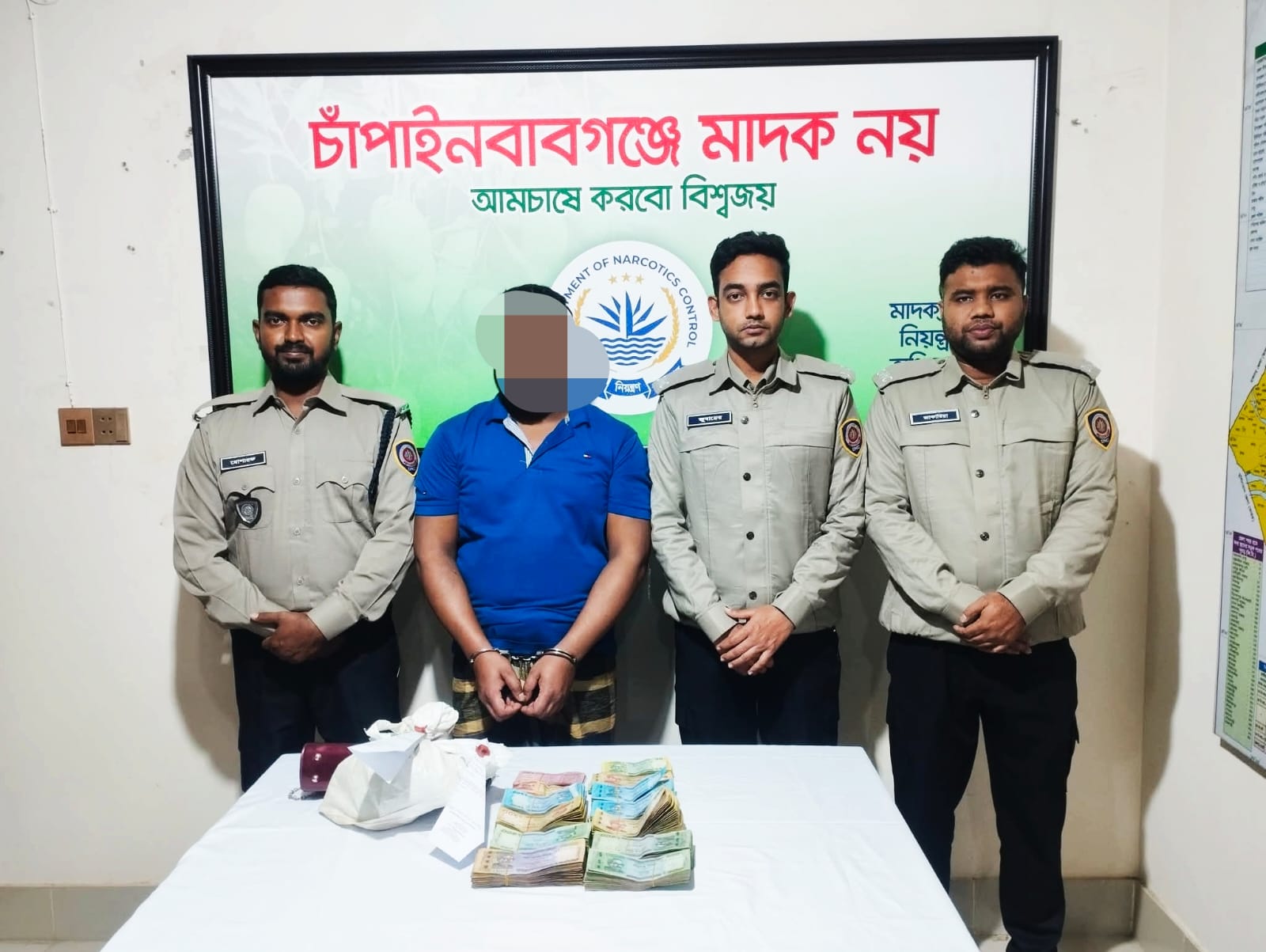 চাঁপাইনবাবগঞ্জ ডিএনসির অভিযানে মাদক ও নগদ টাকা সহ চিহ্নিত মাদক ব্যবসায়ী ইয়ানুর গ্রেফতার