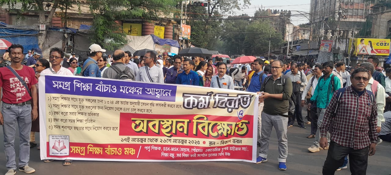 আজ ২১ শে নভেম্বর শুক্রবার, ঠিক দুপুর একটায়, সমগ্র শিক্ষা বাঁচাও মঞ্চের আওহানে, শিয়ালদা স্টেশনের কাছ থেকে কয়েকশো পার্শ্ব শিক্ষক একত্রিত হয়ে মিছিল করে এস এন ব্যানার্জি রোড ধরে ধর্মতলা ডরিনা ক্রসিং এ উপস্থিত হন এবং ধর্মতলা ডরিনা ক্রসিং এ বিক্ষোভ দেখাতে থাকেন, পরে প্রশাসনের মধ্যস্থতায় বিক্ষোভ মিছিল ওয়াই চ্যানেলে গিয়ে উপস্থিত হয় এবং ডেপুটেশন দিতে যান।
