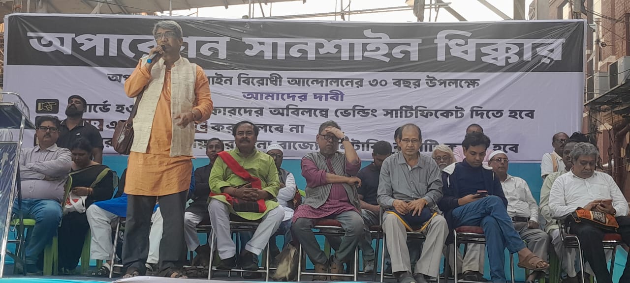 আজ ২৫ শে নভেম্বর মঙ্গলবার, কলকাতা কর্পোরেশনের পাশে, ২৪শে নভেম্বর সোমবার ঠিক দুপুর তিনটায়,হকার সংগ্ৰাম কমিটির ডাকে, অপারেশন সানশাইনের ৩০ তম ধিক্কার দিবস পালিত হলো। কয়েশো। হকার এই ধিক্কার সভায় অংশগ্রহণ করেন।