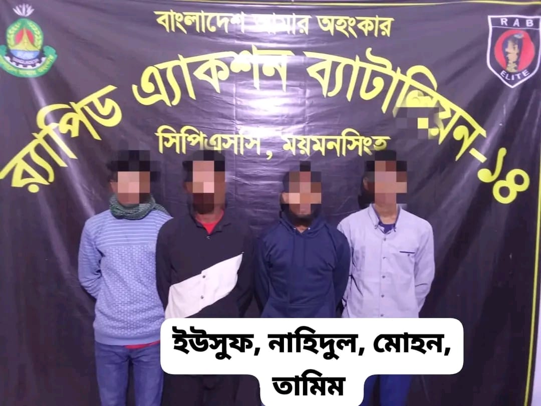 ময়মনসিংহ র্যাব ১৪ কর্তৃক অভিযানে গাজাসহ মাদক কারবারি গ্রেফতার ০৪