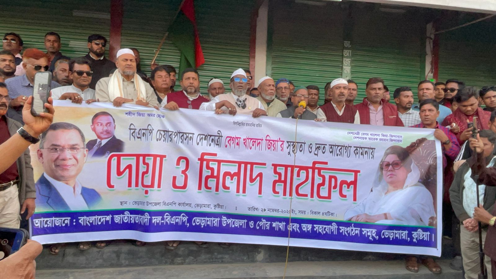 ভেড়ামারায় বেগম খালেদা জিয়ার রোগ মুক্তির জন্য গণ দোয়া অনুষ্ঠিত।