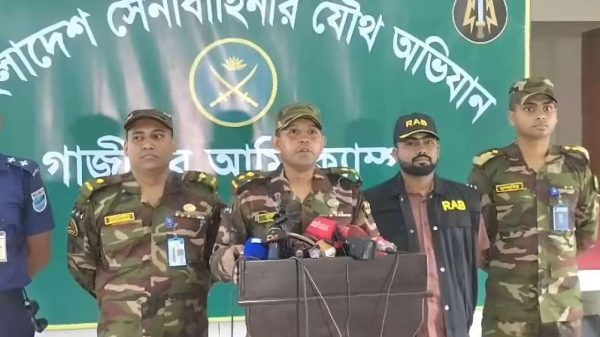 শান্তি-শৃঙ্খলা রক্ষায় সেনা অভিযান: গাজীপুরে শীর্ষ সন্ত্রাসী গ্রেফতার নিয়ে ব্রিফিং। মোঃসুলতান মাহমুদ, গাজীপুর প্রতিনিধি। গাজীপুরে চিহ্নিত সন্ত্রাসী ও ডাকাত দলের সর্দার এনামুল হক মোল্লাকে গ্রেফতারের ঘটনাকে কেন্দ্র করে ...বিস্তারিত পড়ুন