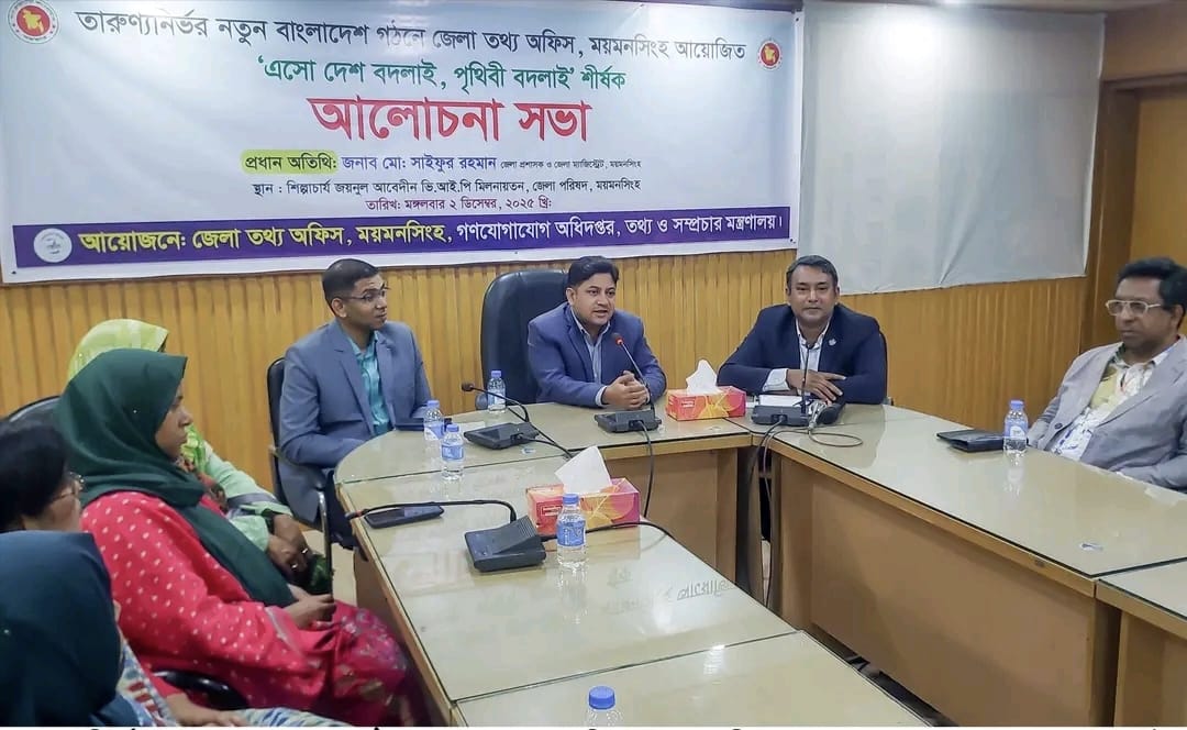 ময়মনসিংহ জেলা তথ্য অফিস, আয়োজনে তারুণ্য নির্ভর বাংলাদেশ গঠনে আলোচনা সভা অনুষ্ঠিত