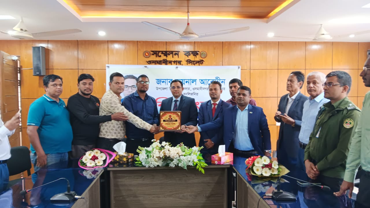 ওসমানীনগরে ইউএনও জয়নাল আবেদীনকে সরকারি কর্মচারী সমন্বয় পরিষদের বিদায়ী সংবর্ধনা