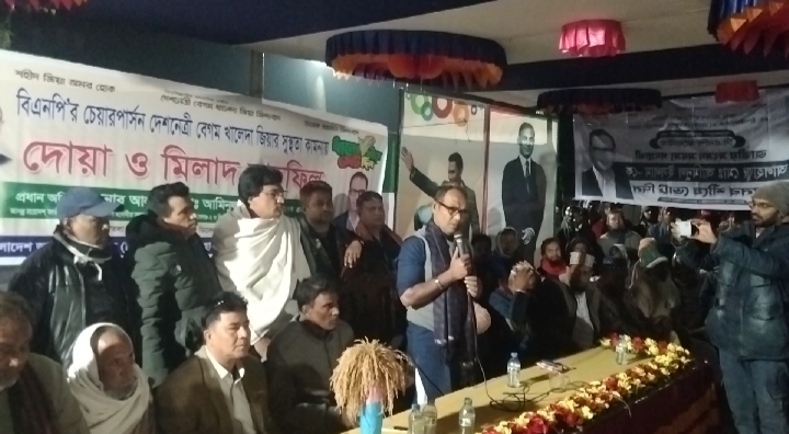 চাঁপাইনবাবগঞ্জের ভোলাহাটে বিএনপির চেয়ারপার্সন বারবার জনগণের ভোটে নির্বাচিত প্রধানমন্ত্রী, প্রতিটি অন্যায়ের বিরুদ্ধে আপোষহীন দেশনেত্রী বেগম খালেদা জিয়ার চরম অসুস্থতায় দোয়া ও মিলাদ মাহফিল উপজেলার গোহালবাড়ী ইউনিয়নের কালীতলা বাজারে রাত ৮টায় (৮ ডিসেম্বর ২০২৫) সোমবার অনুষ্ঠিত হয়।