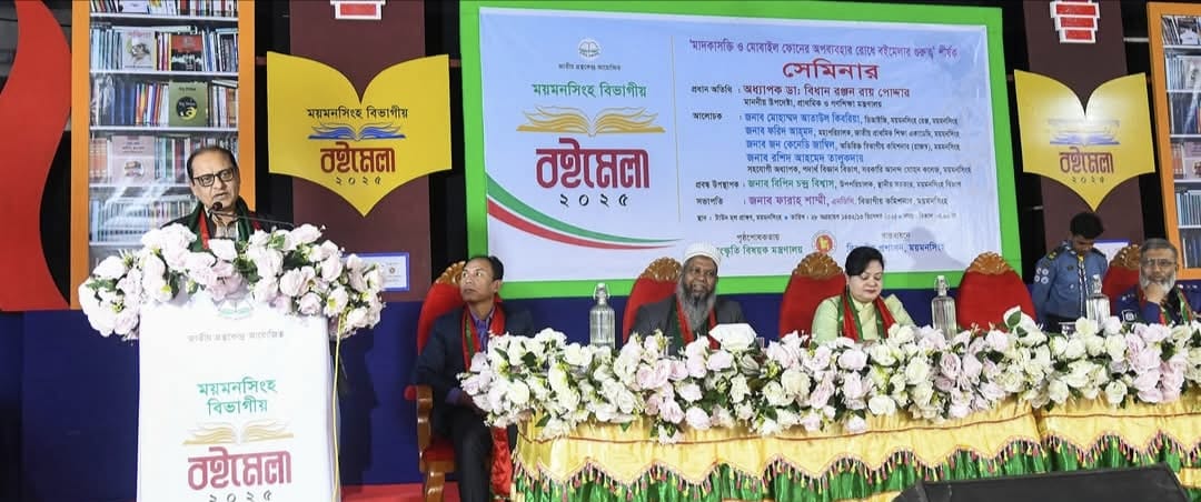 ময়মনসিংহ বিভাগীয় বইমেলা ২০২৫ উপলক্ষ্যে সংস্কৃতি বিষয়ক মন্ত্রণালয়ের পৃষ্ঠপোষকতায় বিভাগীয় প্রশাসনের ব্যবস্থাপনায় ও জাতীয় গ্রন্থকেন্দ্রের আয়োজনে আজ ১৩ ডিসেম্বর শনিবার বিকালে ময়মনসিংহ টাউন হলে অনুষ্ঠিত ‘মাদকাশক্তি ও মোবাইল ফোনের অপব্যবহার রোধে বইমেলার গুরুত্ব’ শীর্ষক সেমিনারে তিনি এসব কথা বলেন।