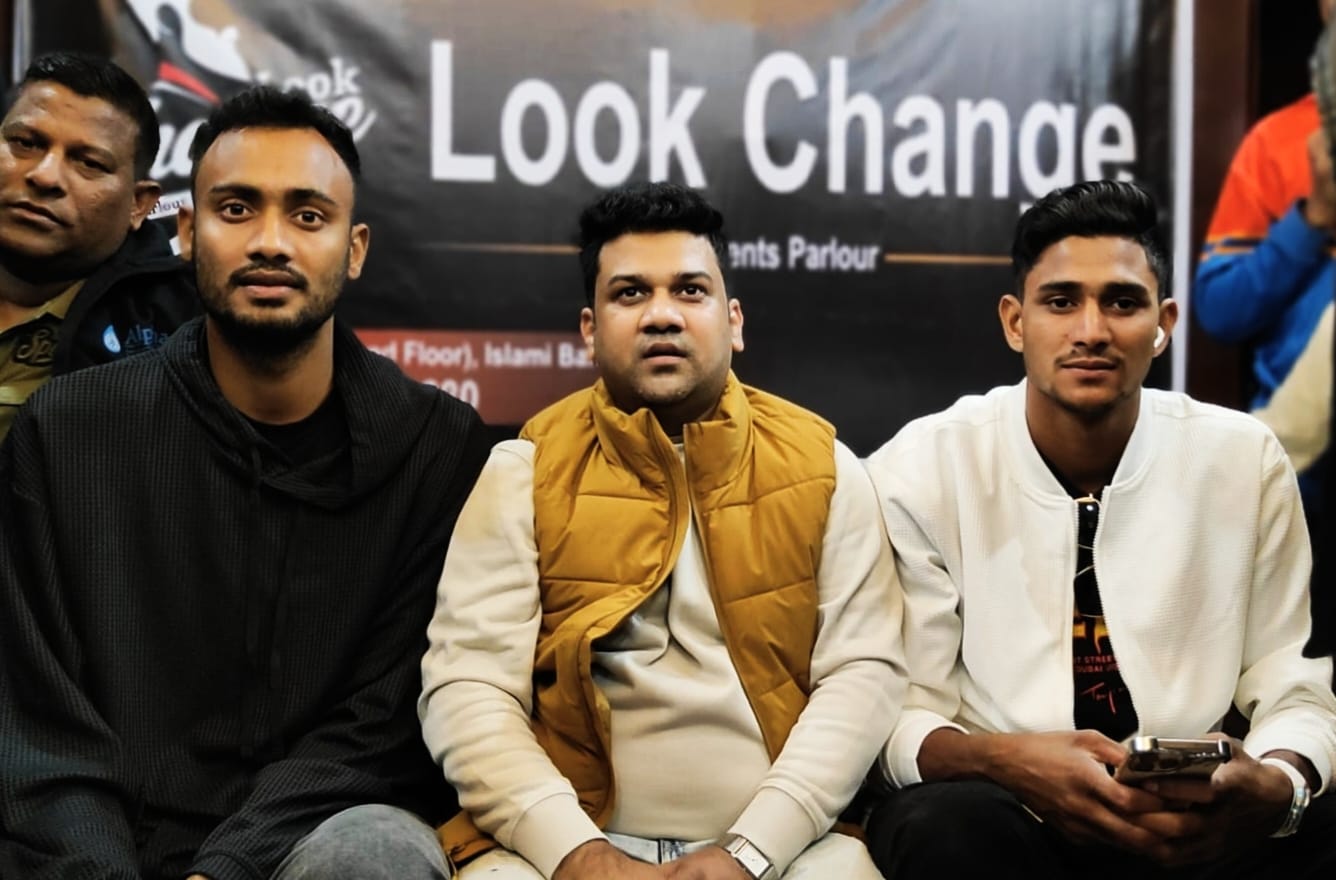 জাতীয় ক্রিকেট দলের নাহিদ রানা ও শরিফুল ইসলাম চাঁপাইনবাবগঞ্জ ‘লুক চেঞ্জ’ জেনস্ পার্লার পরিদর্শন