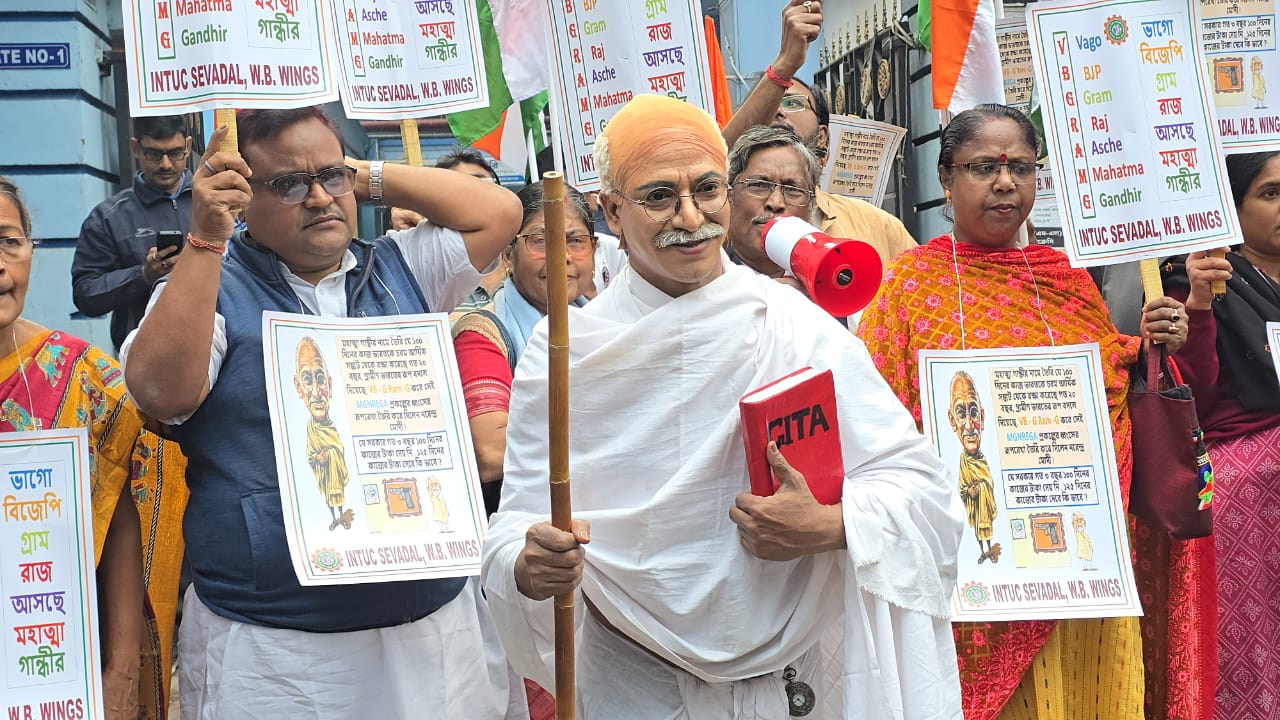 আমরা এরই প্রতিবাদে, এবং গরিব কেটে খাওয়া মানুষের ন্যায্য অধিকারের দাবী নিয়ে , গান্ধী সহ বেশ কিছু খেটে খাওয়া শ্রমিকদের সঙ্গে নিয়ে সেবা দলের তরফ থেকে প্রতিবাদে নেমেছি। গরিব মানুষদের ন্যায্য অধিকার ফিরিয়ে দিতে। আই এন টি ইউ সি সেবাদল সবসময় মানুষের পাশে থাকার চেষ্টা করেন।