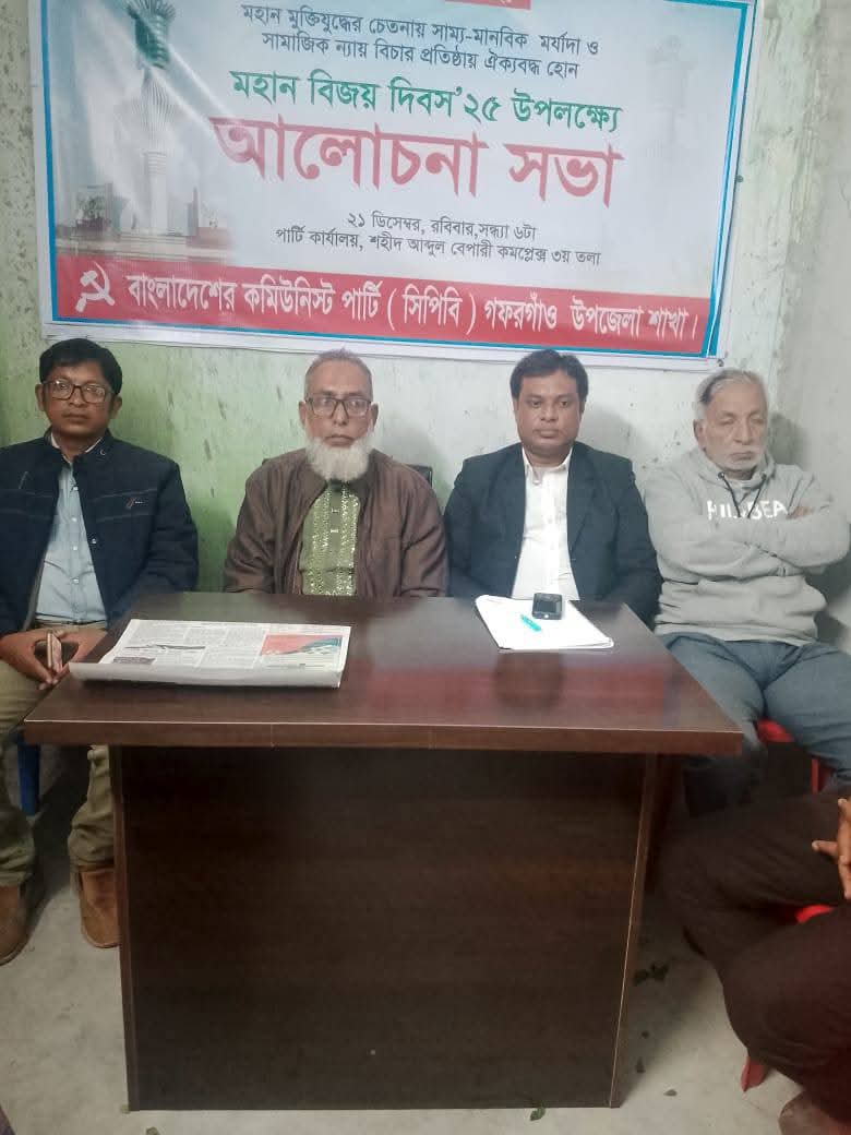 বাংলাদেশের কমিউনিস্ট পার্টি ( সিপিবি ) উদ্যোগে গফরগাঁওয়ে মহান বিজয় দিবস উপলক্ষে আলোচনা সভা অনুষ্ঠিত হয়।