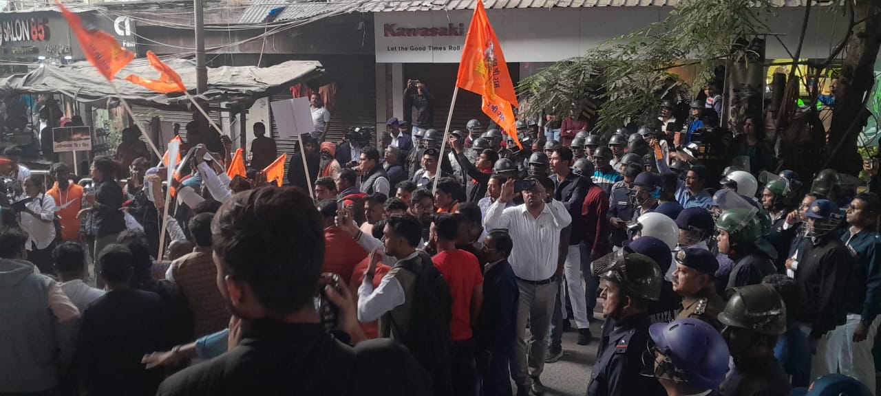 আজ বিভিন্ন দলের হাইকমিশন অভিযানের জন্য, বেগবাগান মোড় থেকে, আইকমিশন দূতাবাস পর্যন্ত, ব্যারিকেড পুলিশ প্রটেকশন দিয়ে আটকে দেন, মিছিল নিজাম প্যালেস থেকে এসে বিগ বাগান মোড়ে পুলিশের ব্যারিকেটে আটকে যান, কিন্তু দলের কর্মীরা, কোন রকম উচ্ছৃংখলভাবে ব্যারিকেট ভাঙার চেষ্টা করেননি , বিরোধী দলনেতার পরামর্শ মত, ব্যারিকেডের সামনে প্রতিবাদ জানিয়ে, ইউনূসের পুতুল দাহ করেন এবং বাংলাদেশকে হুঁশিয়ারী দেন। কোনো রকম ডেপুটেশন দিতে যাননি, শুধু হুঁশিয়ারী দিলেন, জানো আর একটিও হিন্দুদের উপর অত্যাচার না হয়। যেভাবে দিপু দাস পুড়িয়ে মারা হয়েছে ও রিপোর্টারের উপর হামলা করা হয়েছে। আমরা এর তীব্র প্রতিবাদ জানাই, জন্য বেছে বেছে হিন্দুদের উপর অত্যাচার করা হচ্ছে এর জবাব দিতেই হবে। ইউনুস তুমি দূর হটো, তোমার ঠাই নাই।