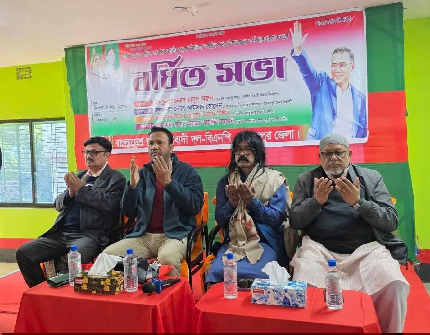 মেহেরপুর জেলা বিএনপি'র আয়োজনে অনুষ্ঠিত বর্ধিত সভায় নেতৃবৃন্দ সংগঠনের ঐক্য, শৃঙ্খলা এবং ভবিষ্যৎ আন্দোলন-সংগ্রাম জোরদারের আহ্বান জানান, শনিবার ১০ জানুয়ারী-২০২৬ সকালের দিকে মেহেরপুর শহরের খান কমিউনিটি সেন্টারে বর্ধিত সভা অনুষ্ঠিত হয়।