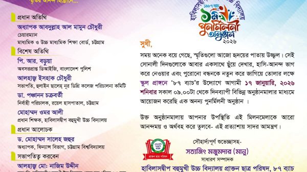 আগামী ১৭জানুয়ারী,শনিবার হাবিলাসদ্বীপ স্কুলের প্রাক্তন ছাত্র পরিষদের পুনর্মিলনী অনুষ্ঠান