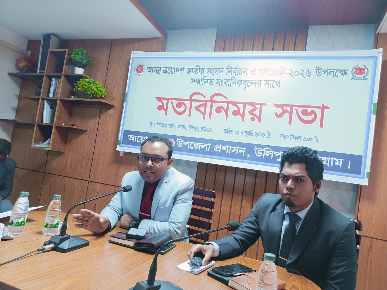 এয়োদশ জাতীয় সংসদ নির্বাচন ও গণভোট-২০২৬ সামনে রেখে ভোটার উপস্থিতি বৃদ্ধি ও ভোটাধিকার প্রয়োগে জনগণকে উদ্বুদ্ধ করার লক্ষ্যে কুড়িগ্রামের উলিপুরে সাংবাদিকদের সঙ্গে মতবিনিময় সভা অনুষ্ঠিত হয়েছে।