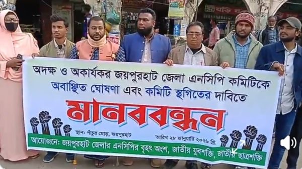 জয়পুরহাটে এনসিপির কমিটিকে অবাঞ্চিত ঘোষণা এবং কমিটি স্থগিতের দাবি
