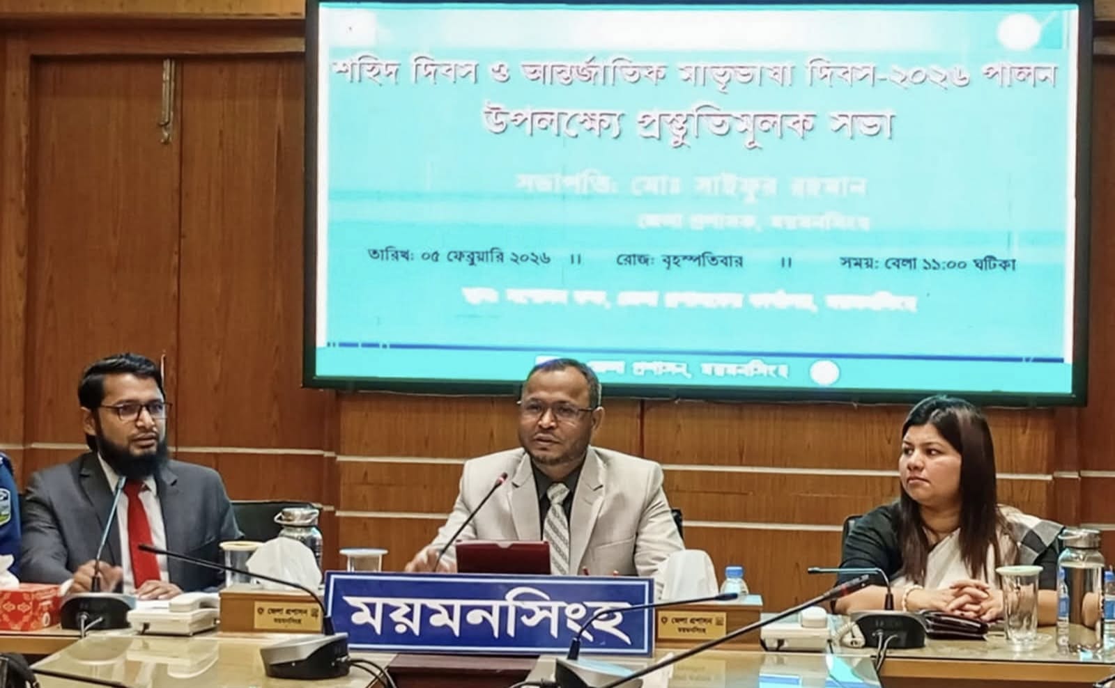 মকবুল হোসেন, ময়মনসিংহ জেলা প্রতিনিধি : ২১ ফেব্রুয়ারি শহীদ দিবস ও আন্তর্জাতিক মাতৃভাষা দিবস-২০২৬ পালন উপলক্ষ্যে ময়মনসিংহে আজ প্রস্তুতিমূলক সভা অনুষ্ঠিত হয়েছে।